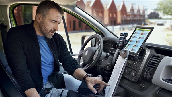 Pour que votre flotte soit connectée, il faut que vos véhicules soient équipés à la commande de l'option pré-équipement services connectés, ou de la tablette multimédia R-LINK et d’une carte mains-libres.